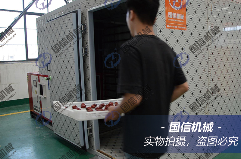 想要烘干紅棗,有動(dòng)態(tài)和靜態(tài)兩種烘干方式可供選擇。動(dòng)態(tài)即將新鮮的紅棗放入上料輸送機(jī)中,在鏈條的帶動(dòng)下,層層循環(huán)翻轉(zhuǎn)進(jìn)行烘干;而靜態(tài)的烘干,則是將新鮮的紅棗放置在托盤內(nèi),整齊擺放在烘干房中,靜置烘干。兩種不同的烘干模式,均可以保證紅棗的烘干效果,完成品質(zhì)烘干。
